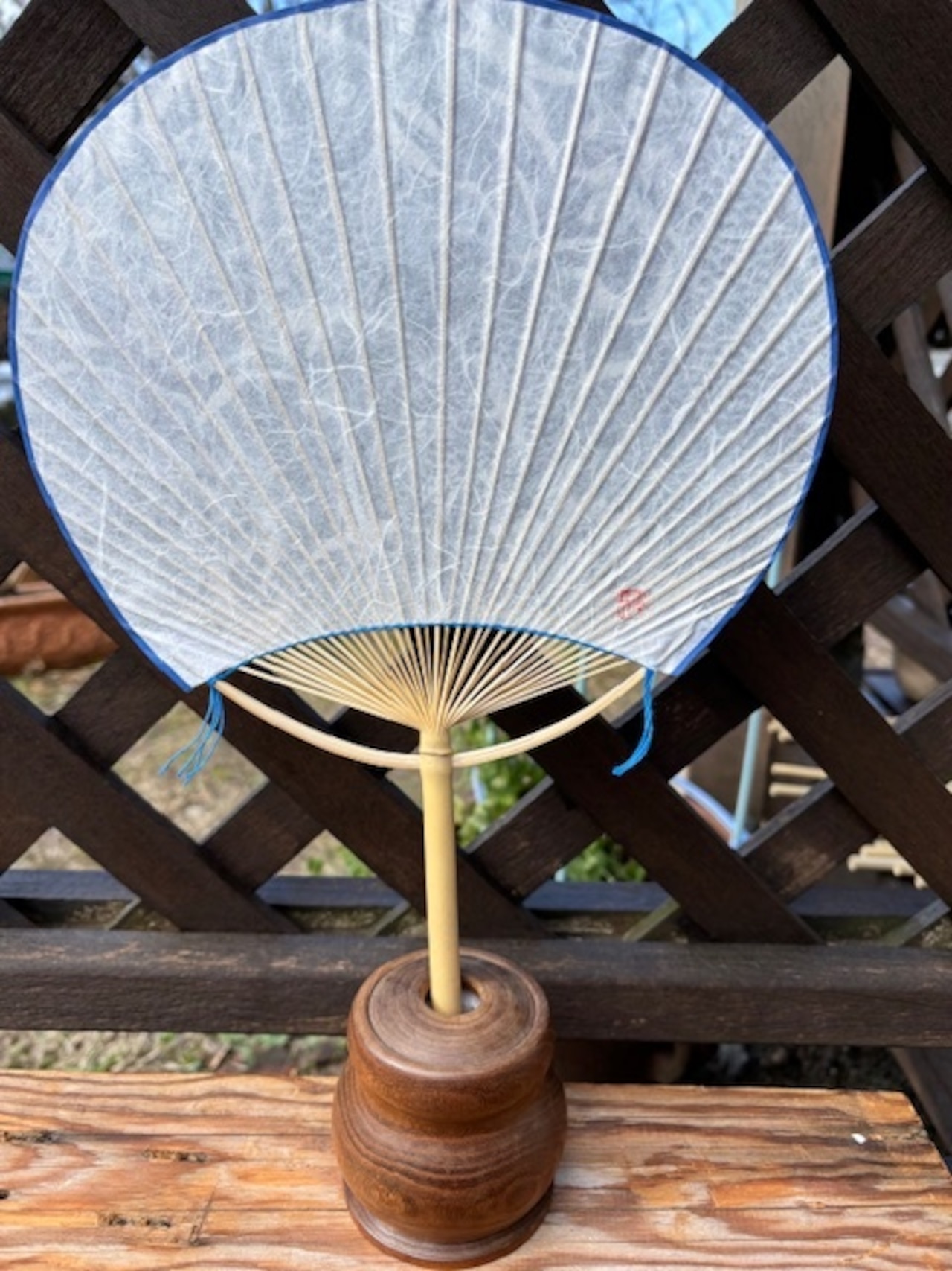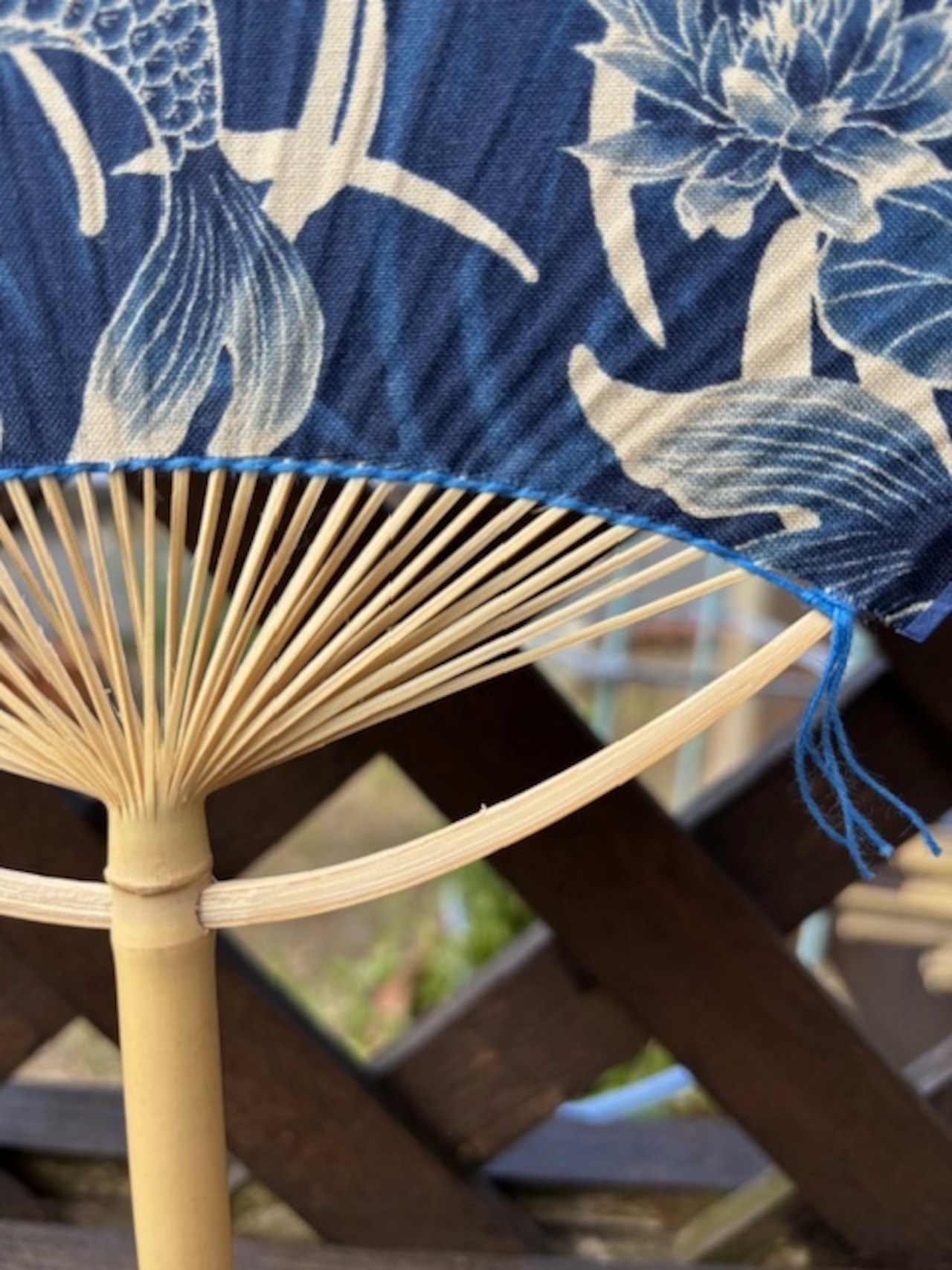 南房総地域の女竹(めだけ)を細く割いて作ってあるので、うちわが適度にしなって優しい風が来ます。
