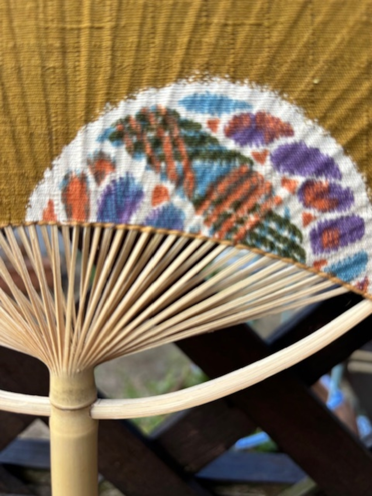 南房総地域の女竹(めだけ)を細く割いて作ってあるので、うちわが適度にしなって優しい風が来ます。