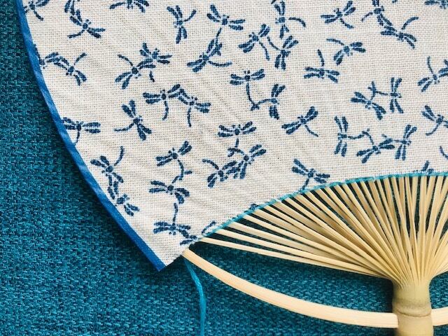トンボ柄のプリント綿布を貼りました。