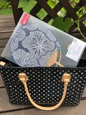 うちわには、綿生地を貼りました。うちわの柄は、生地から貼り素材を切り取る場所により、写真と多少異なることがあります。