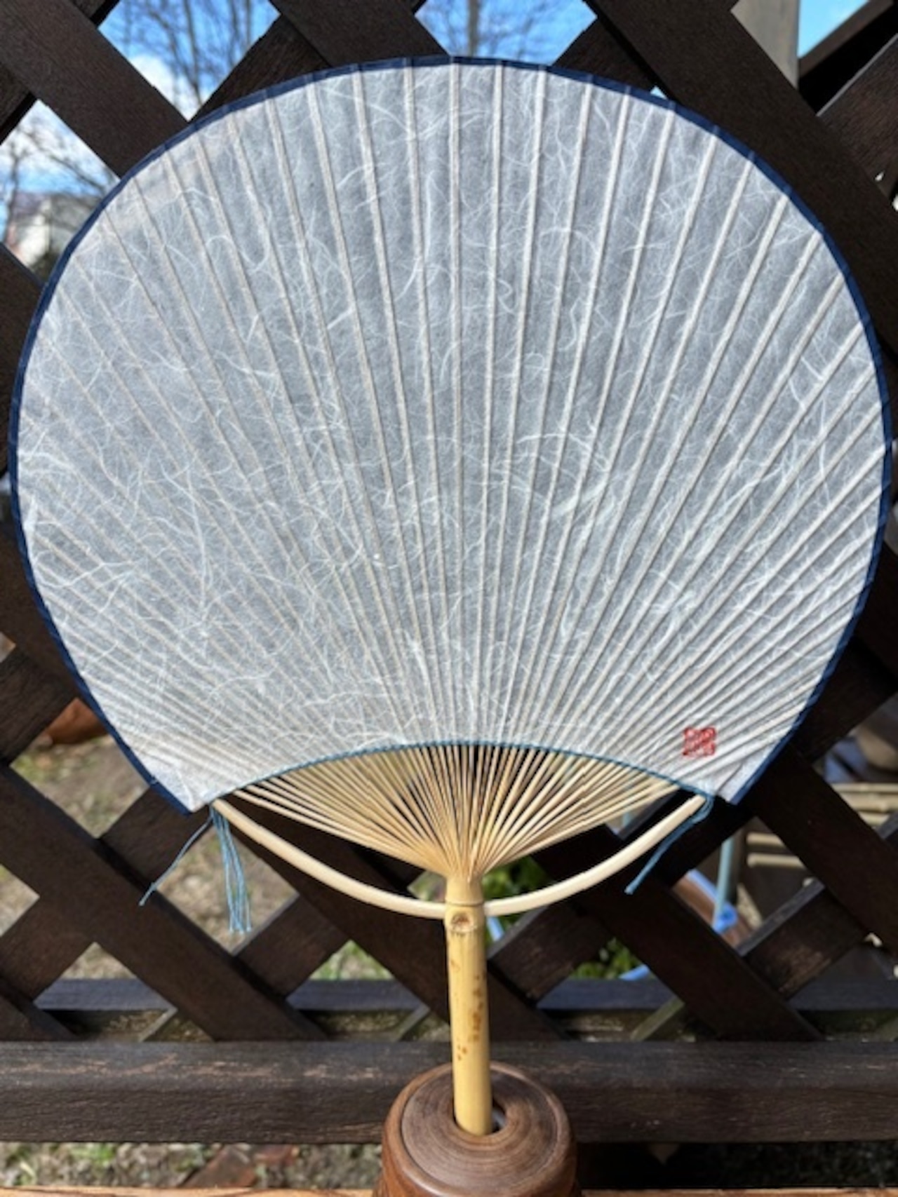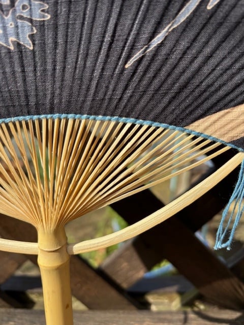 南房総地域の女竹(めだけ)を細く割いて作ってあるので、うちわが適度にしなって優しい風が来ます。