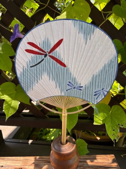 うちわには浴衣地を貼りました。